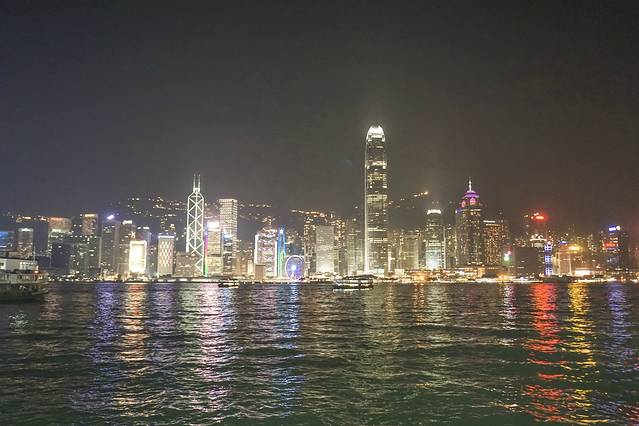 最后停在尖沙咀天星码头,经典的维港夜景展现在眼前。