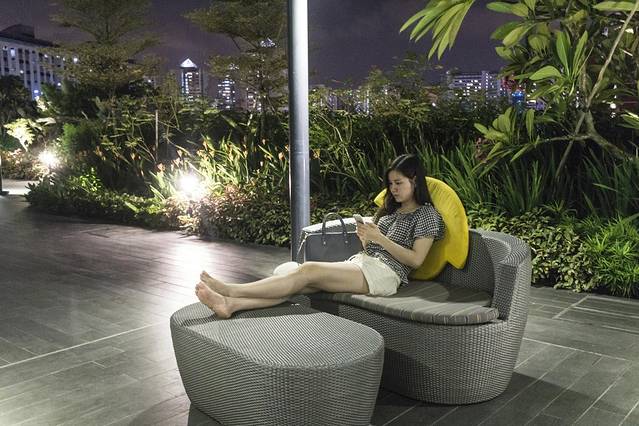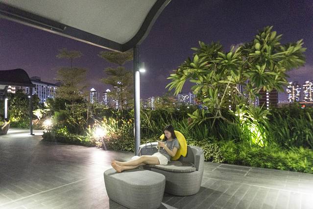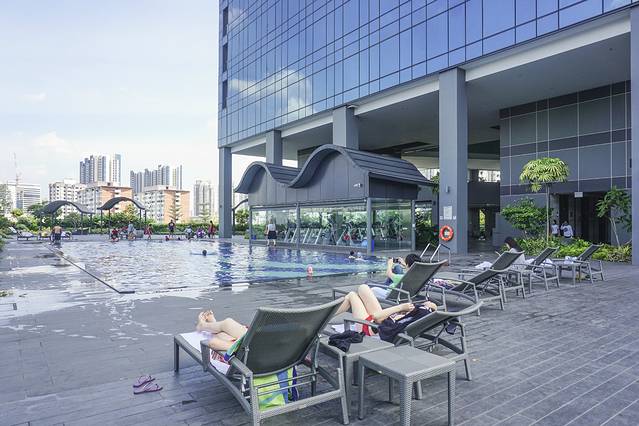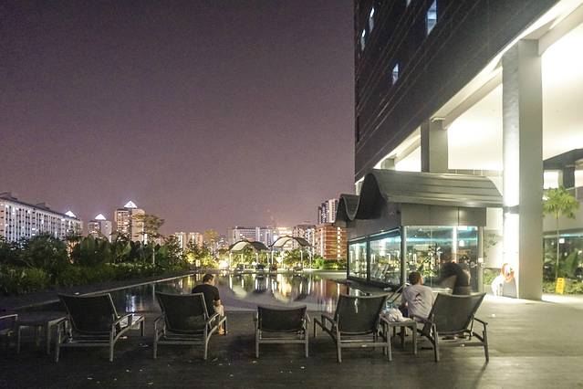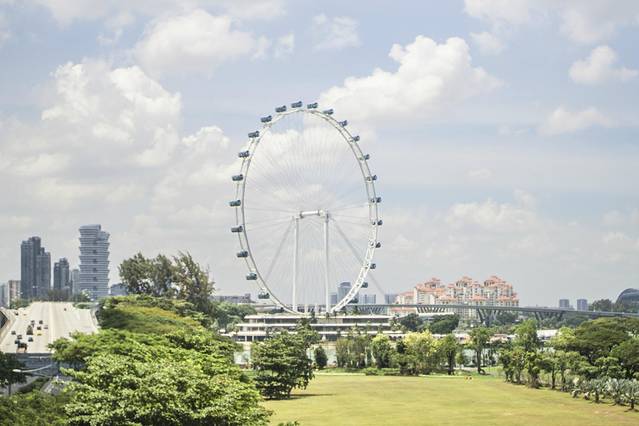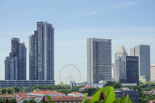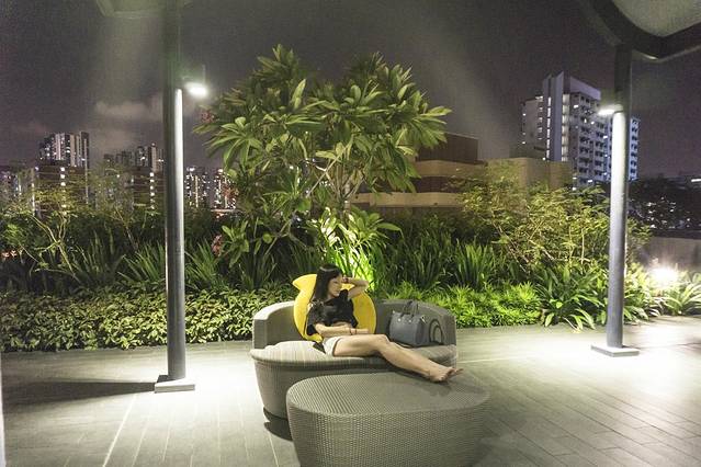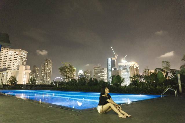 泳池区还能看到地标摩天轮和Bugis CBD。