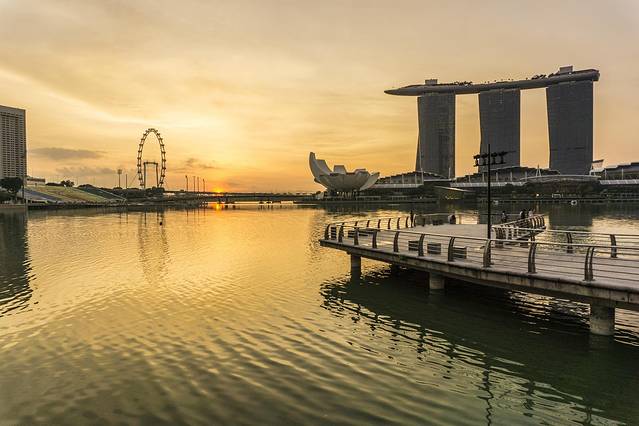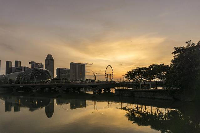 黎明破晓的滨海湾,没了晚上的喧嚣。