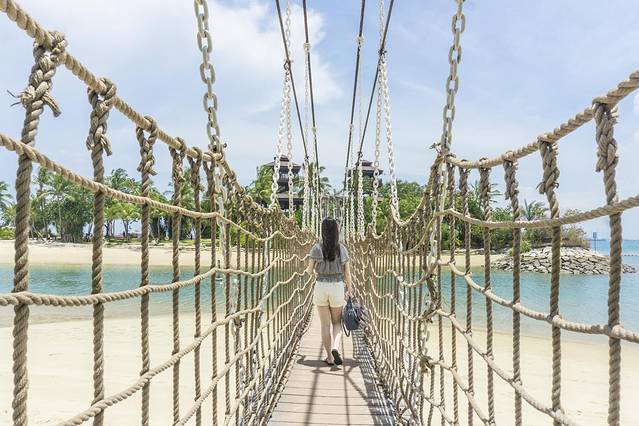 吹风吹得差不多,我们便去Siloso海滩的飞龙探险公园玩Mega Zip,还没走到就听到两洋妞从上面滑下来,叫得惊天动地,Bonnie吓惨了。