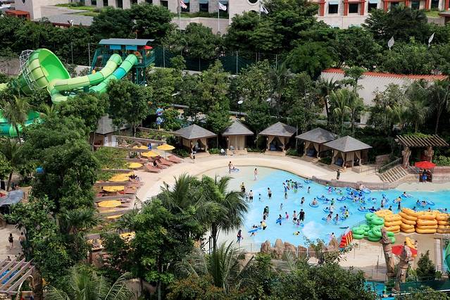 路上还有个儿童水上乐园,很多老外一家大小在玩水。