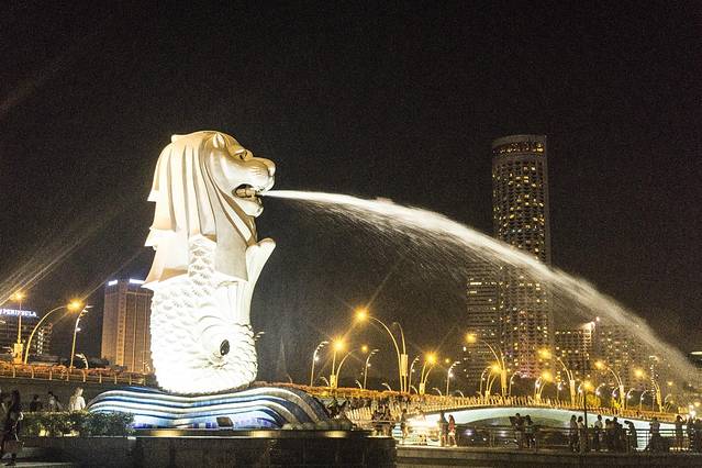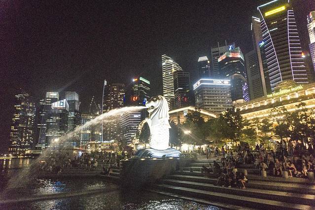 从滨海湾花园出来,我们打车到鱼尾狮公园。