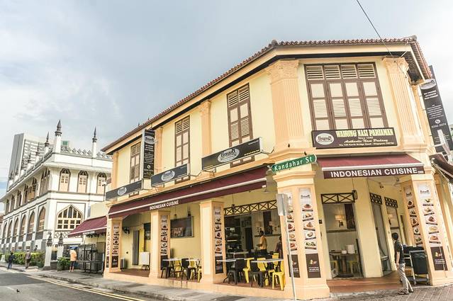这里有很多餐馆,马来菜、娘惹菜、印度菜等。