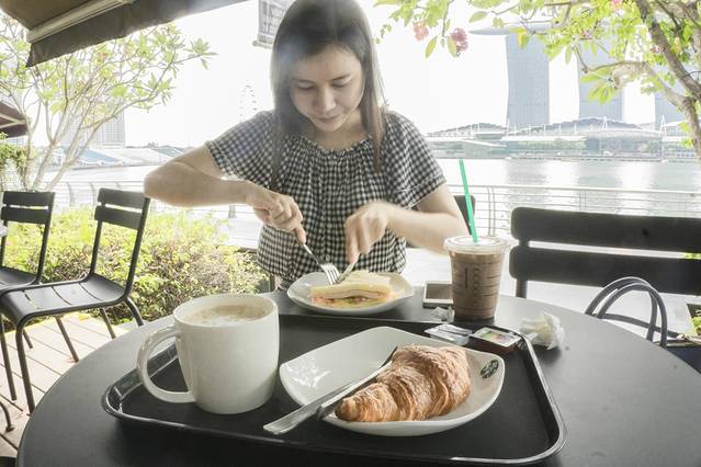 日出过后,天开始转阴,有点闷热,我沿着滨海湾一路散步,其实我很喜欢用散步来欣赏一个城市的。