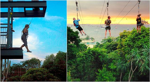 忘不了,大暴雨中在圣淘沙山顶的Mega Zip悬空身体滑下海。