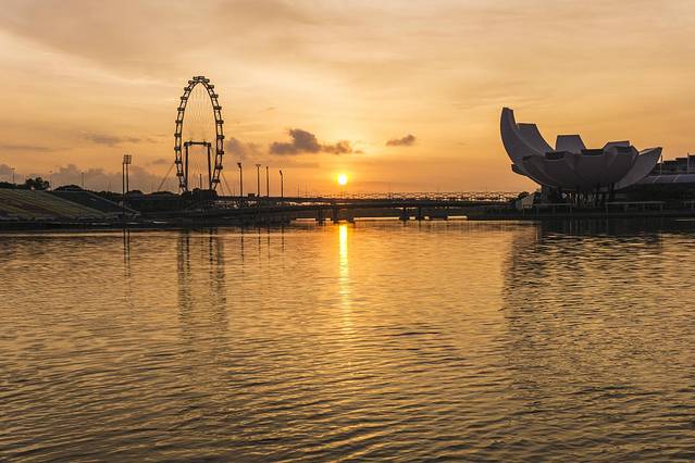 太阳逐渐从东方升起,映红了整个滨海湾。