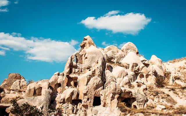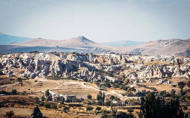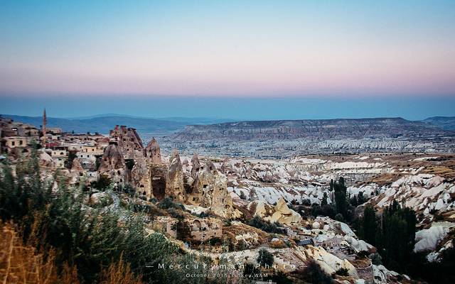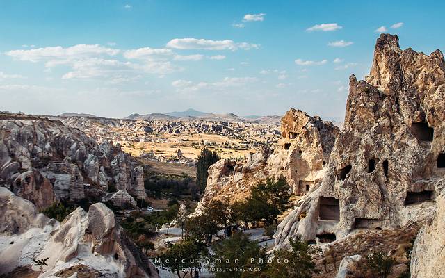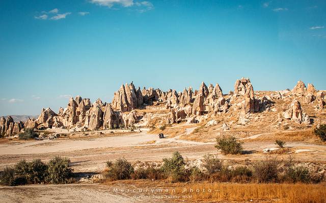 约4小时车程到达“卡帕多奇亚”,世界上最壮丽的“风化区”,如月球般荒凉的山谷,也是当年《星球大战》的取景地。这些仿佛是从古灵精怪的神话世界中走出,又被安放在荒凉的安纳托尼亚平原中的一块土地上,一路上连绵起伏的丘陵山村、斑驳陆离的橙色和奶油色岩土,一切都是那么缥缈。