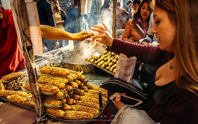 土耳其的烤玉米,不仅放糖,还撒盐,味道很不错。