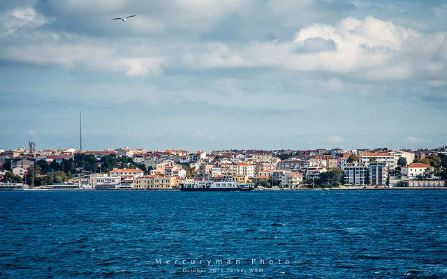 在伊斯坦布尔,乘上往返渡轮,不到一个小时就可以在欧洲和亚洲之间往返一趟。载满当地人的渡轮船队都会拉响嘹亮的汽笛,越过博斯普鲁斯海峡并横渡马尔马拉海,一群群海鸥则高声鸣叫着盘旋在船队四周。