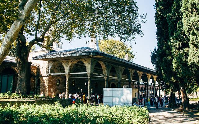 坐落于金角湾的老皇宫,宫殿外侧是绿木葱郁的第一庭院,第二庭院式 时代的水晶制品、银器、以及中国陶瓷的博物馆;第三庭院式会见室、图书馆、服装珍宝馆,这里还有世界第二大钻石。来老皇宫最主要的一个原因就是,在皇宫的后院,有个绝佳的眺望博斯布鲁斯海峡和金角湾的观景台,就冲这个他那张门票也值得了。