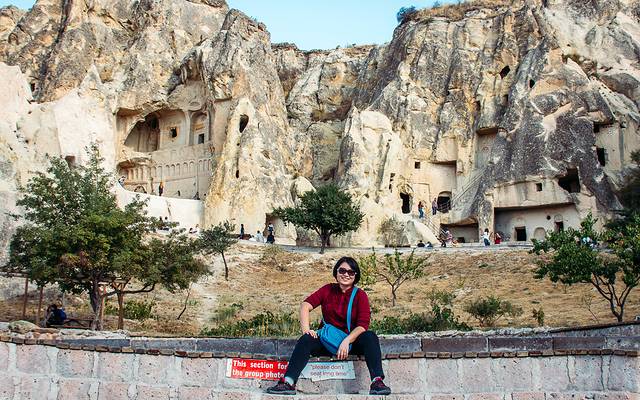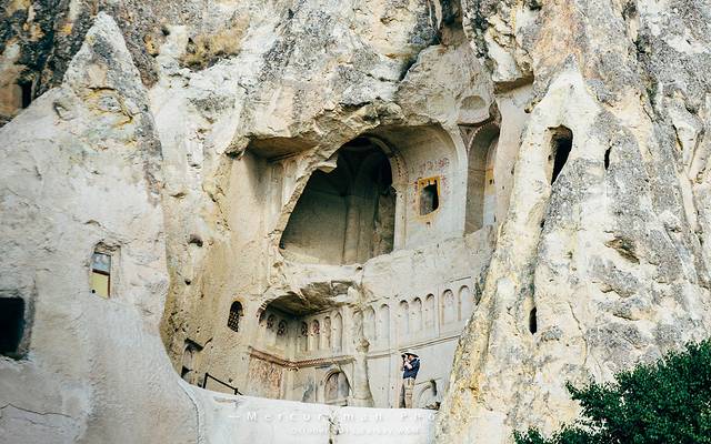 到达鸽子谷已经接近黄昏,虽然比预期的时间晚,不适合拍照,但在绯红的晚霞映衬下,更突显格雷梅的壮美。岩石上不满了密密麻麻的鸽子懂,据说是古人用来收集鸽子粪作肥料。