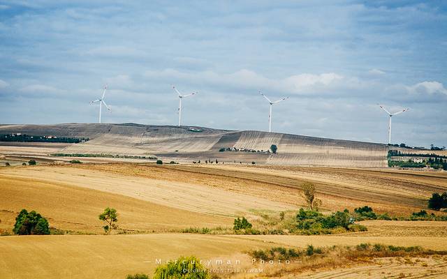 远处山脊上的风车电站,犹如一个个巨人,守护这海岸线。