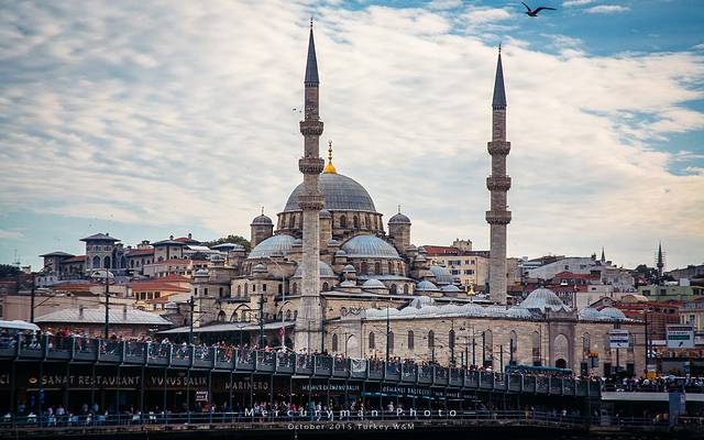 修建于1597年的新清真寺。下方是加拉塔大桥。