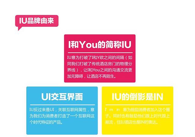 IU酒店,是铂涛集团推出的“互联网轻精品”酒店,秉承“最自己 NO Out”的价值主张,为追求极致自我、渴望与周围发生各种链接的新生一代“年轻”族群提供颠覆酒店传统的创新产品,在保证精巧设计、舒适享受的基础上,IU酒店更致力于用互联网思维打造“线上酒店空间”。