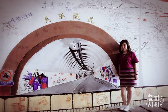 很长的一条隧道,有很多涂鸦