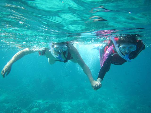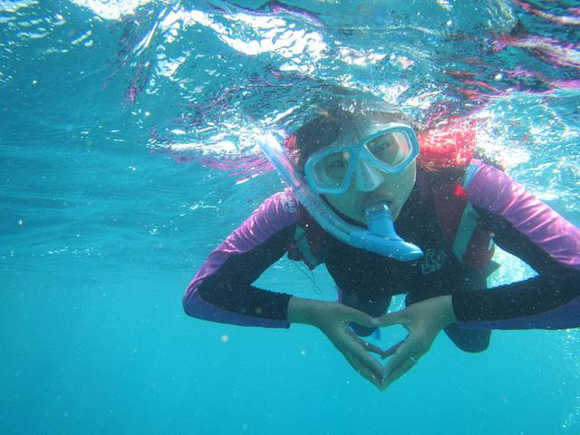 一切安排妥当,我们奔向大海,开始浮潜。马达京的水真的如玻璃般一样清澈,认识的与不认识的各种海洋生物,在身边游来游去。