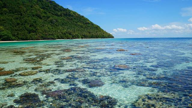 天气晴朗,万里无云,度假村开着快艇将我们送到了珍珠岛,我的目的就是爬上山顶眺望敦沙卡兰海洋公园全景。一定要记得穿运动鞋。跳岛游是半天时间。