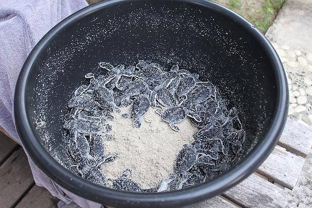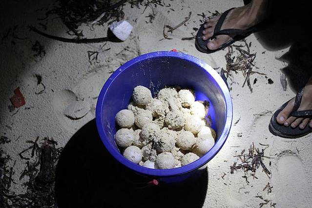 晚上度假村组织去看海龟下蛋,虽然没看见大海龟,看见了海龟蛋。工作人员把他们都放到了海龟孵化基地保护起来。