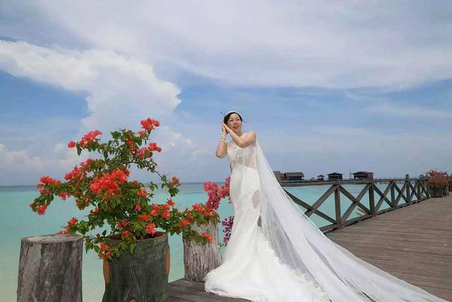定飞鱼家的套餐有个非常大的实惠,飞鱼家有个最美新娘活动,不但可以免费布置婚纱,还可以在度假村免费婚纱拍照,美丽的海岛,美丽的景色,拍一组美丽的婚纱照,留作美好的记忆。