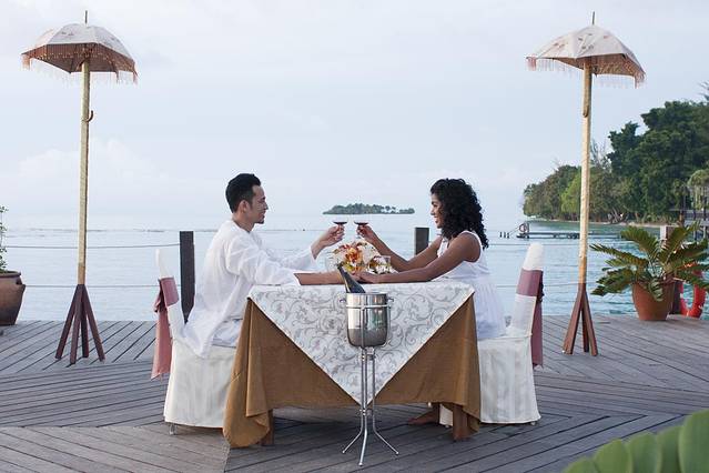 岛上有2个度假村,一个是邦邦岛西里伯斯度假村,一个是邦邦岛龙珠度假村。我们入住的就是邦邦龙珠度假村。度假村有三种房型,花园房、沙滩屋和水屋。我们住的水屋,房间很宽敞,还有一个大大阳台,随时可以在躺椅上吹海风,晒太阳。度假村也给我免费安排了蜜月布置。