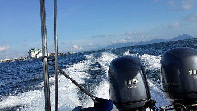 在马达京的最后一天,我们就这样在海岛上闲逛、散步,希望将岛上的一切美好都留在我们幸福的记忆里。中午12点,度假村安排快艇,帮我们送到了离马达京不远的邦邦岛。