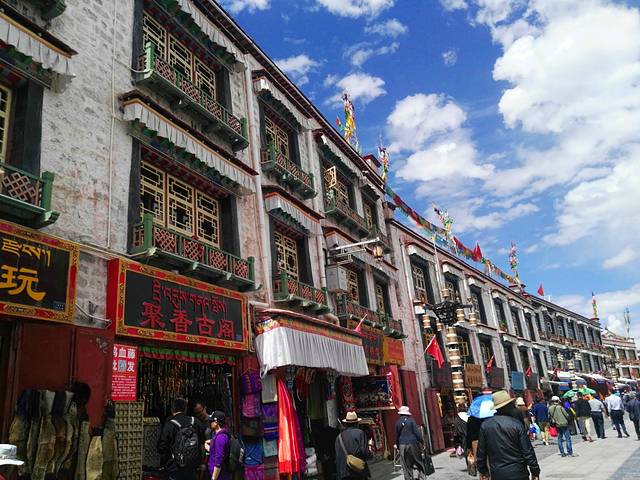 八廓街位于拉萨市城关区,又称八角街,是一整片有着浓郁藏族生活气息的街区。最初它只是一条环绕大照寺的普通街道,后来成为朝圣者的转经路。街道是由手工打磨的石块铺成的。现在它已经是西藏最著名的转经道和拉萨的标志性旅游必去地之一了。
