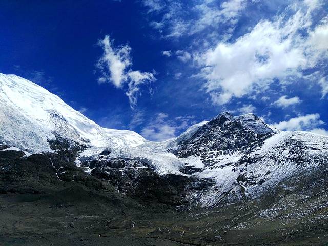 路经念青唐古拉山,下车拍照。念青唐古拉山终年白雪皑皑,云雾缭绕,主峰格拉丹冬长江正源沱沱河的发源地,