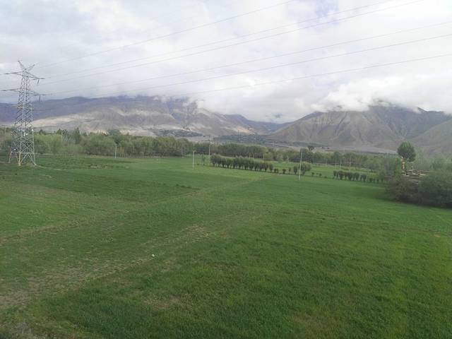 这里的云层低的仿佛触手可摸,高速路两边绿油油的麦子给雪域高原铺上了一层厚厚的天然地毯。
