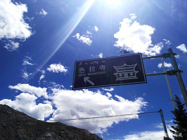 色拉寺指示牌。24路车终点站下车走不了一百米就能看到色拉寺的大门