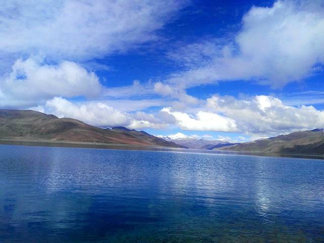 站在这片蜿蜒的蔚蓝面前,眼前一切的色彩都已被掩盖。那纤尘不染的纯净天空似乎已将最纯最蓝的称号让与了这位婀娜的蓝色佳人,两边的山土似乎只为映衬这缎蓝绸而存在,还有远处的白云与雪山,他们是圣洁的,但在羊卓雍措面前,他们却只能成为了神圣的陪伴者。
