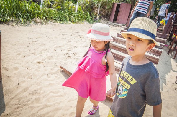 用小桶提上来的海水拌着细砂,各种形状就可以随意想象来造型,王国,城堡,又或者游乐园。。。