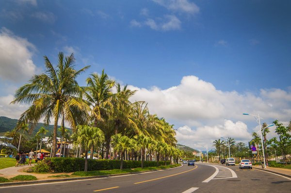 沿途到处都可见的椰树,蔚蓝的天空,棉花朵朵般的白云,路过百花谷后便到