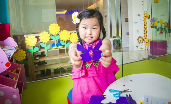 这里的各式书籍也很有趣,剪纸想要什么图形都可以先看看书学习,然后在老师的指导下,自己就能快速成长,来一起看看,俺家小女女剪好了的小蝴蝶是不是很漂亮呀!