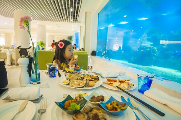 4:在亚龙湾唯一的海洋餐厅里用餐,看到30种4000尾海洋生物欢畅游弋在身边,孩子又该是这样的欣喜若狂呢。