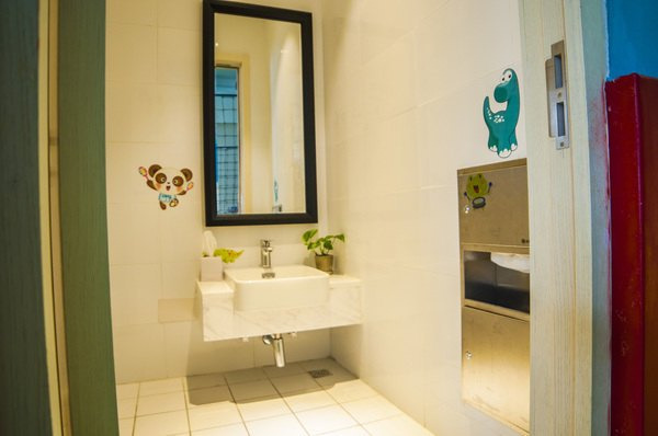 乐园内的儿童洗手间,洗干净小手就可以去小厨房啦