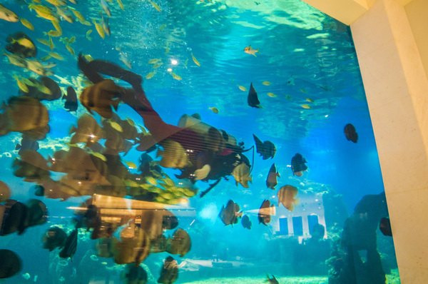 在亚龙湾唯一的海洋餐厅里用餐,看到30种4000尾海洋生物欢畅游弋在身边,让人多么的欣喜若狂。连大人都瞬间可以变成孩子欢乐的摸样