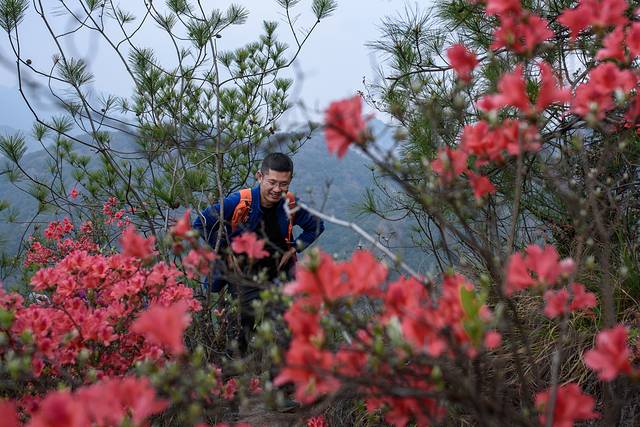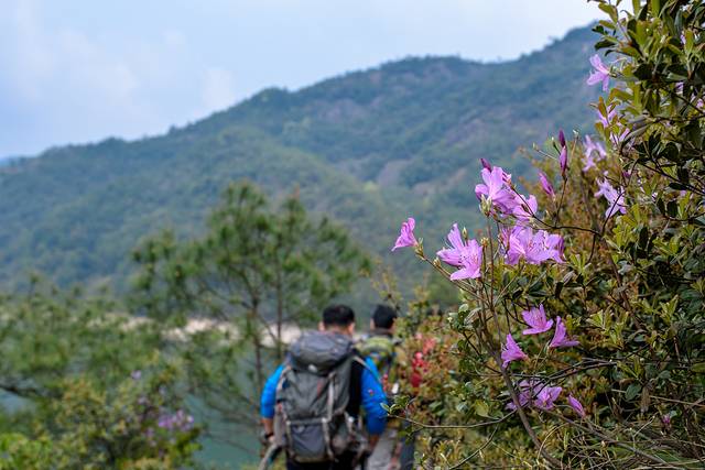 不同的是,这边满山都是这种紫色的杜娟(换个马甲,不知道是不是叫这名字了),颜色艳丽,花朵较大,红的敢吃,这个倒也不知道能不能吃。