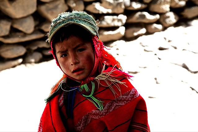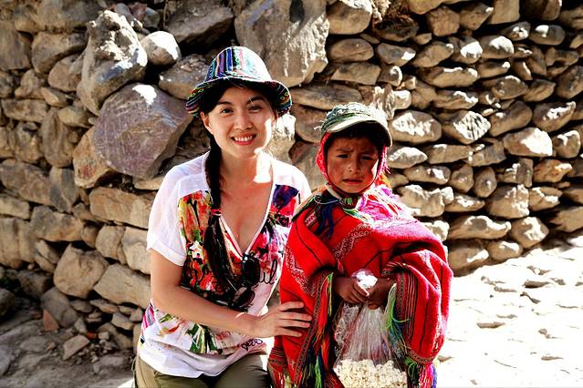 这里就是Huilloc,村子的平均海拔3941。一下车,回身猛了点,立刻觉得头晕一下,赶紧放慢速度。周围身着传统服装的村民们围了过来。