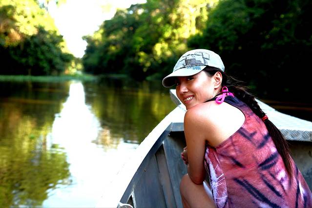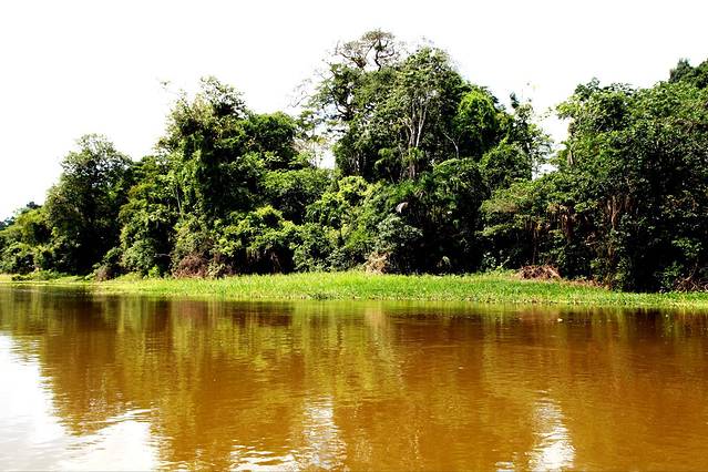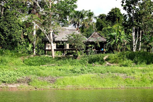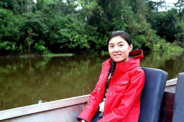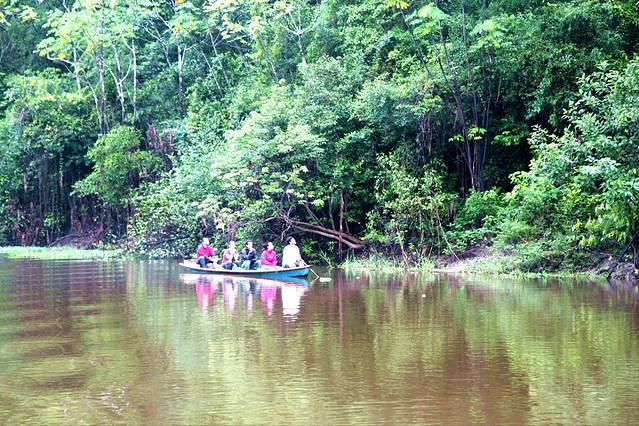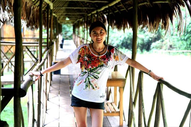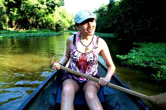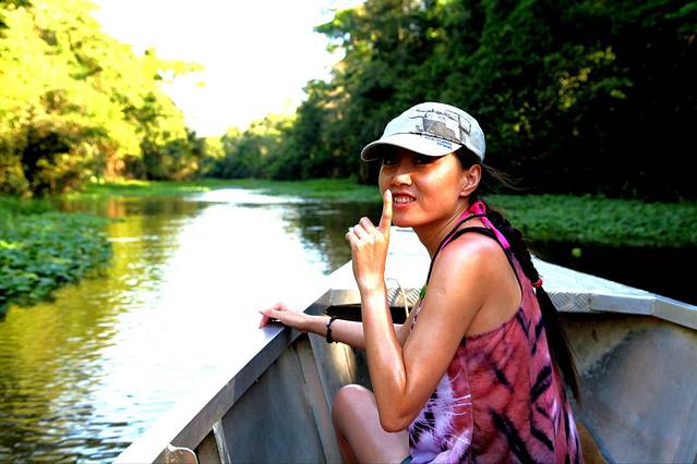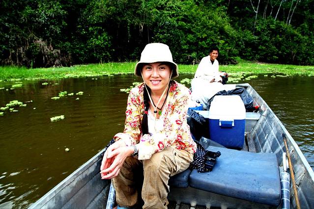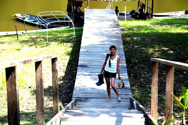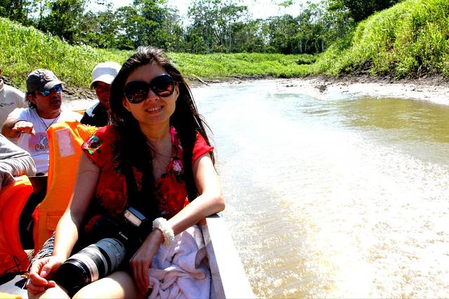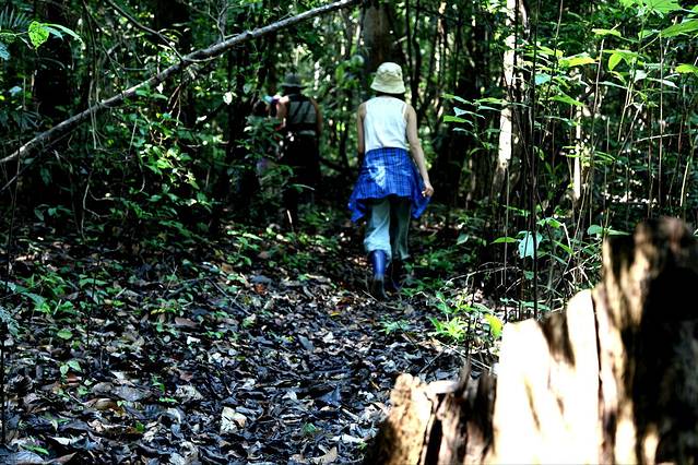 我们就在这个颇幽静的地方下了船,顺着两三米高的土坡爬上岸。据说,雨季的时候土坡都是淹在水里的,有时可以划着小独木舟在林子里穿行,想想应该很好玩。