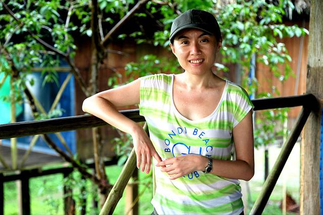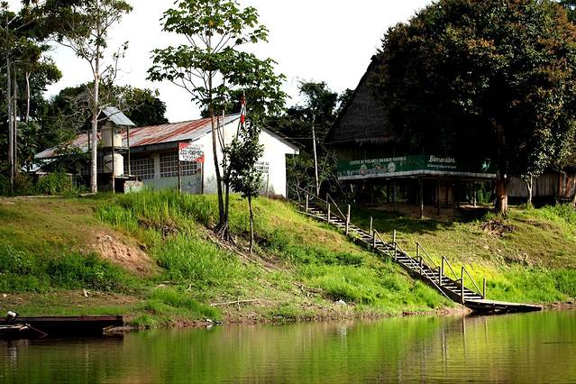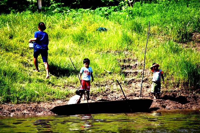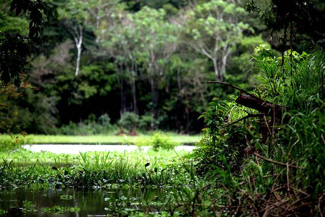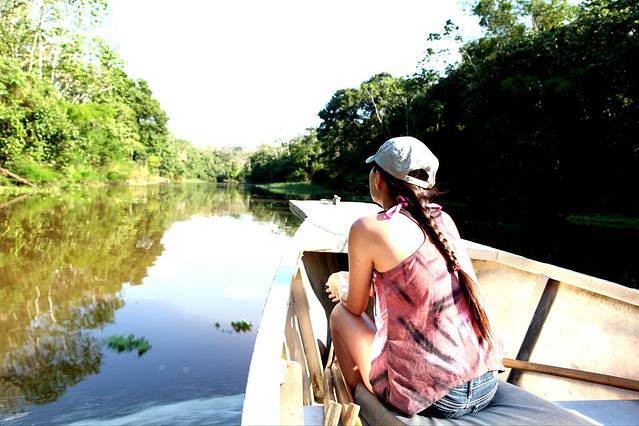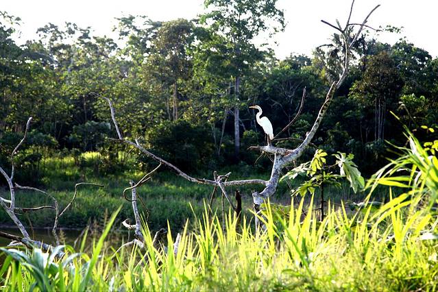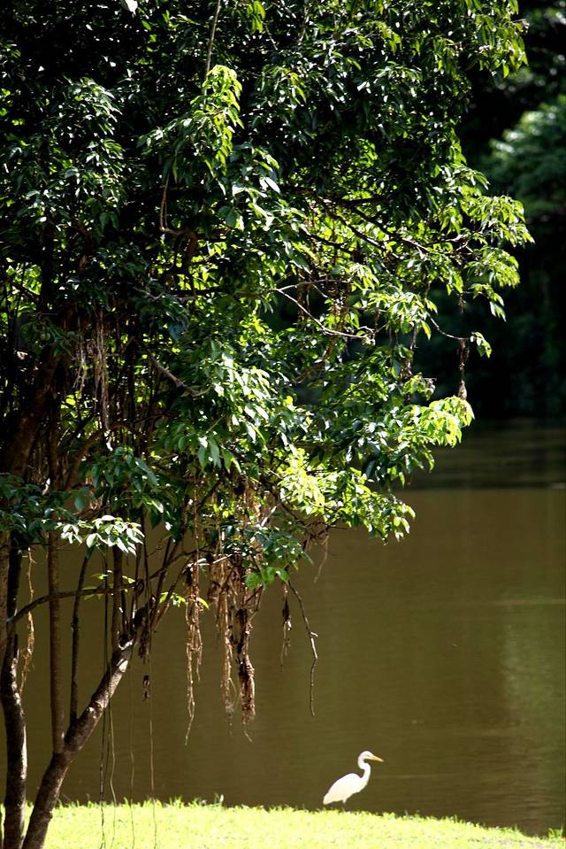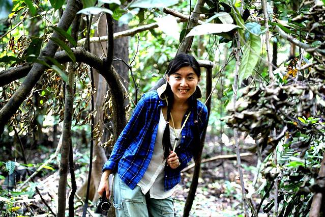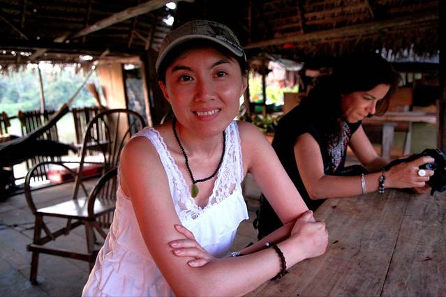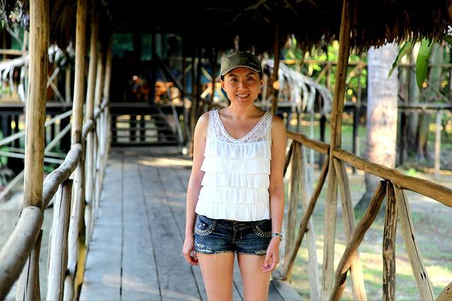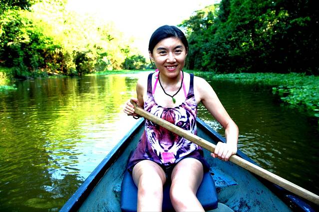 我们就在这个颇幽静的地方下了船,顺着两三米高的土坡爬上岸。据说,雨季的时候土坡都是淹在水里的,有时可以划着小独木舟在林子里穿行,想想应该很好玩。