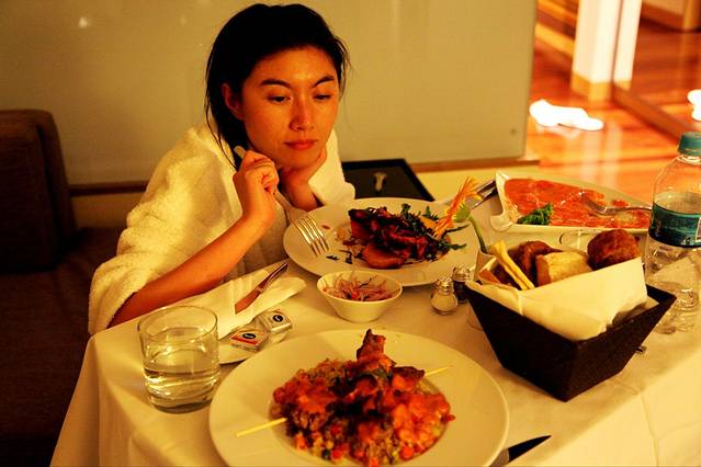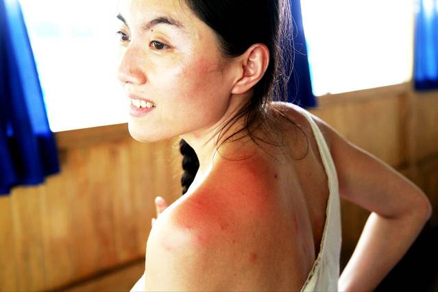 接下来就是很悲催了。本来说回房休息一下,1点吃午饭,然后下午去划独木舟。可是因为头疼的实在厉害,胃口也没了,午饭就没去吃。想让某人去盛碗汤给我吧,今天中午还没有汤。只好拿了些水果回来。幸好,带了几包方便粉丝,用开水沏了一碗。吃了一点,又吃了几口水果,头越来越疼,太阳穴和半个后脑勺都紧绷绷的,人也出奇的困倦。于是决定下午的活动不参加了。就这样在房间里昏昏沉沉地,一直睡到吃晚饭。中间偶尔醒来,也是头晕脑胀头疼欲裂,让某人给按摩一下。这一切的一切,都怪昨晚在我脑袋顶上叮包的那该死的蚊子!