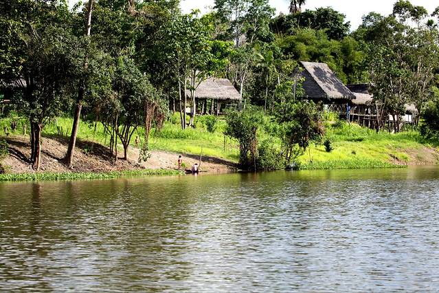 闲话少叙,即刻出发。一行大概20余人,用了两艘摩托艇。沿途看着风景,觉得亚马逊上游的主河道还是相当宽的。