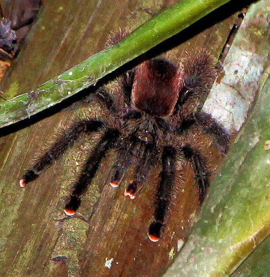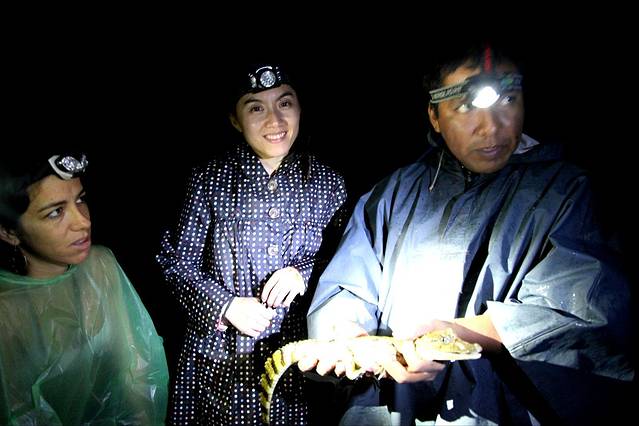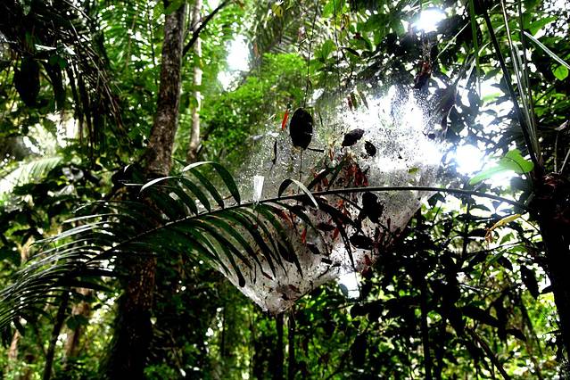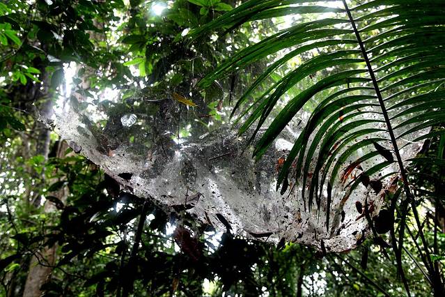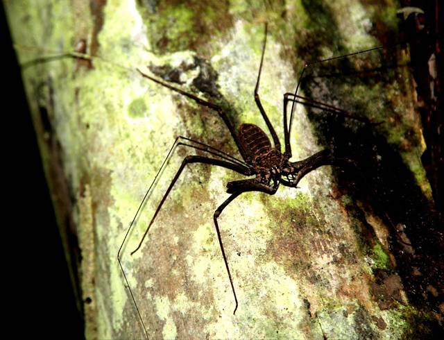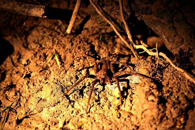 因为太黑了,基本上只能近距离看到一些蚂蚁、爬虫、蜘蛛、蜥蜴、蝙蝠。Rafa指给我们看说树上有小猴,可是,反正,我是没看见。蜘蛛倒是挺多,挺大个儿。照片很难照。