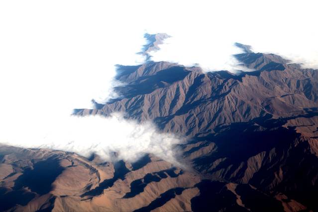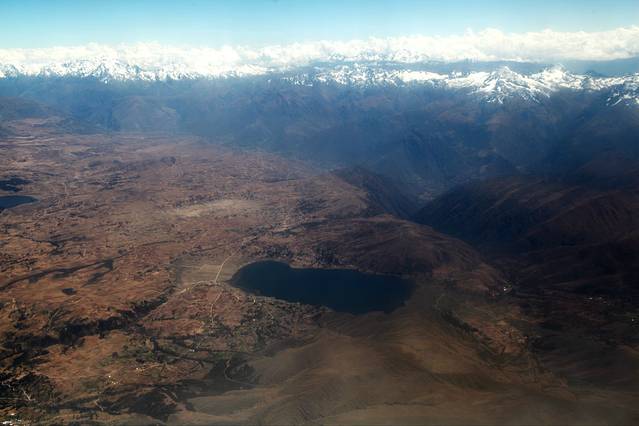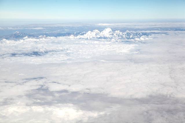 终于起飞。半空中从机舱小窗望出去,看见白云与群山,高原上的湖,还有雪山从云层里冒出个尖儿。
