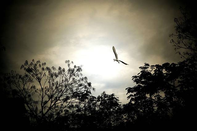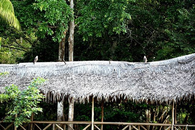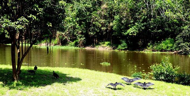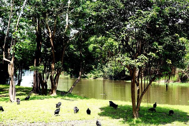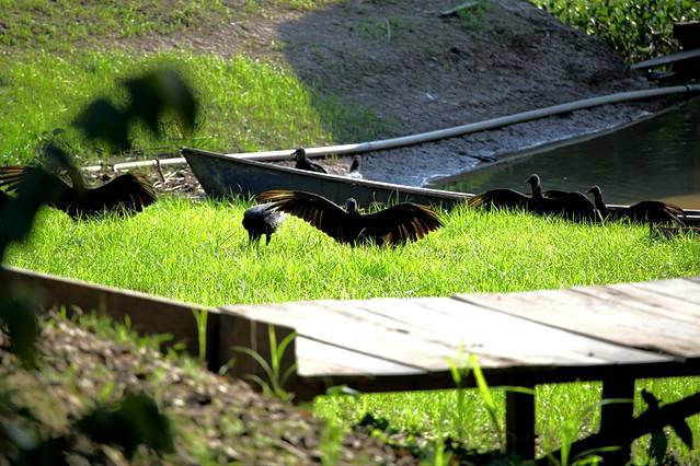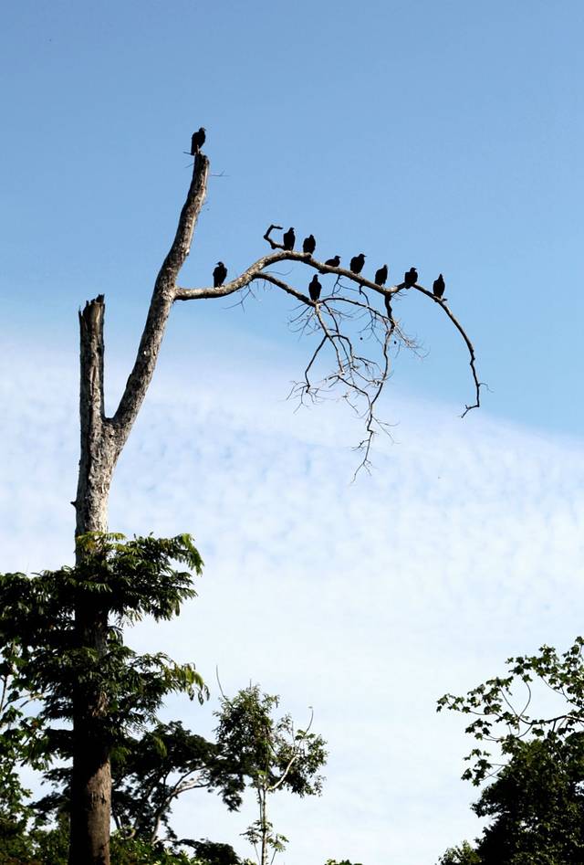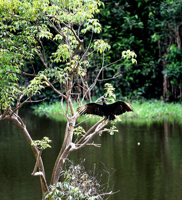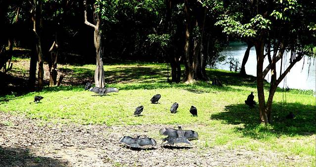 回到房间,在吊床上悠闲地躺了会儿,要不是蚊子老来捣乱,还是很惬意的。河边一群食腐的鸟儿纷纷张开翅膀像是在搞什么邪教仪式。后来问Rafa,他说是在晾翅膀,因为经常吃腐肉,翅膀上有很多细菌,需要晒晒太阳消毒。