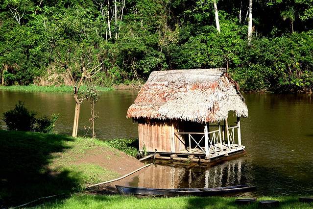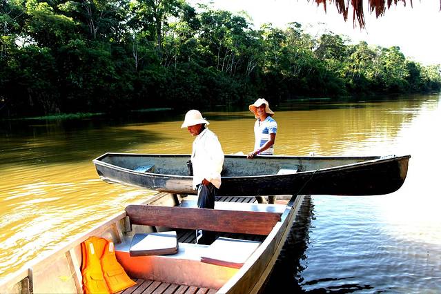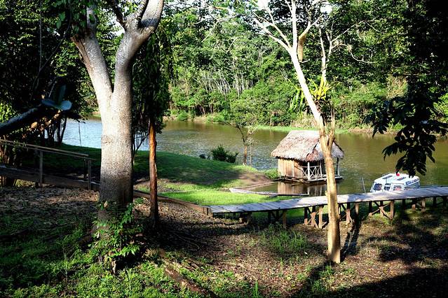 回房间换了干衣服,就去吃午饭了。菜式仍然很简单,但是味道相当不错。不免有些担心,本来来亚马逊是指望能高温减肥的,这样下去,每天吃的那么多,光是坐船也没啥消耗,不会反而增重了吧?下午据说是去附近钓鱼,我其实不是很感兴趣,不过听说是钓食人鱼,还有几分好奇。