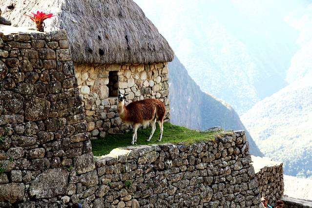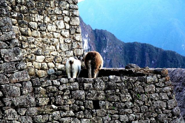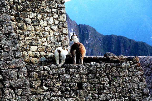 进入马丘比丘,一切还跟昨天差不多,就是草泥马们已经转战到高台上来了,一进门,就有两朵菊花相迎。