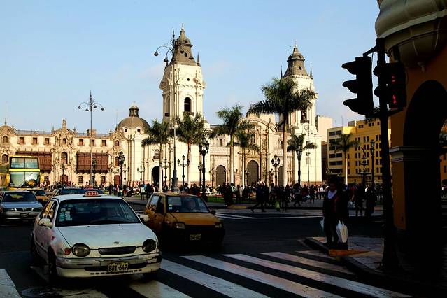 经过17个小时的飞行加转机,终于在24日5点半到达利马,从机场坐众人推荐的Green Taxi去酒店,价格55索尔(大约20美元)还算公道。到酒店check in,稍事休整,就急不可待又打车去了老城区。距离其实比机场过来近很多,但因为是用的酒店的车,所以花了23美元。坑爹呀!