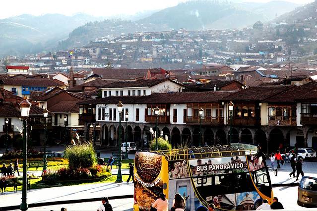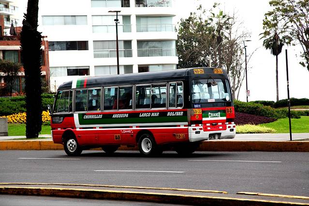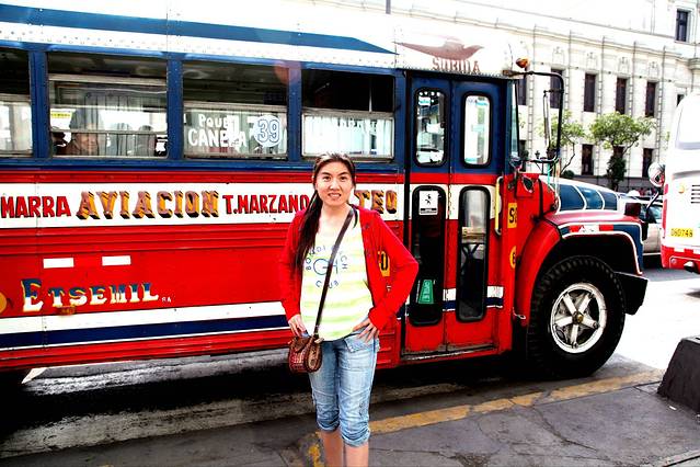 从中国城出来,步行返回市政广场,路上见到利马的公交车。
