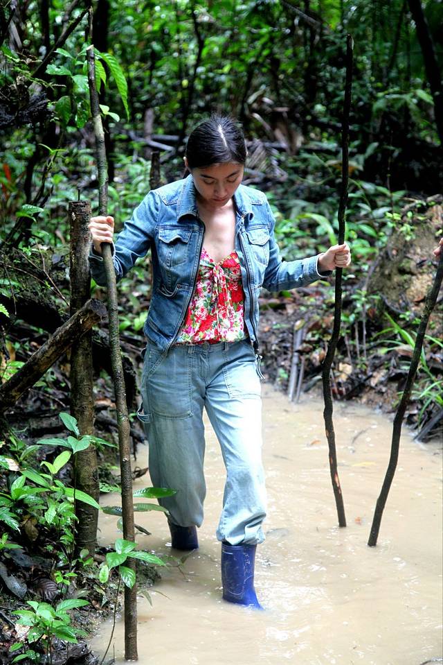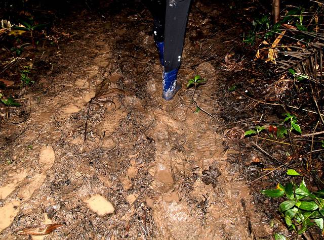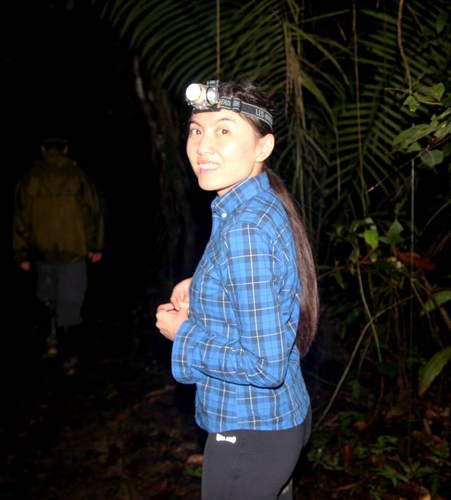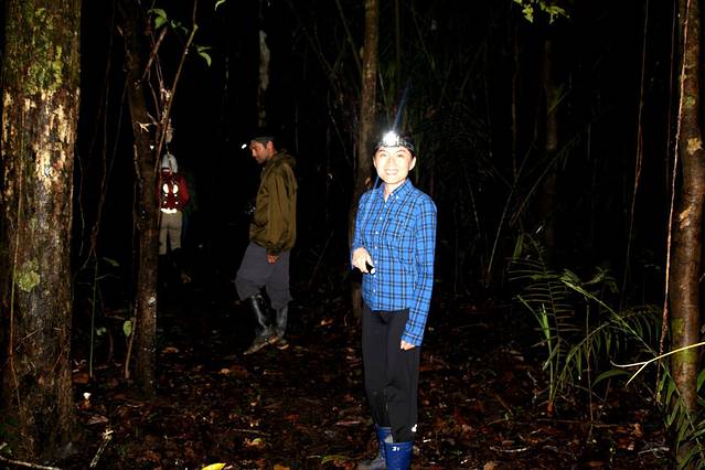 晚餐后,今天的安排是去丛林里night walk。同组的俩美国人都表示,太好了,终于可以不用坐船了,早就想去林子里走走了。好吧。导游叮嘱一定要穿长衣长裤,因为蚊子很多;而且一定要穿雨靴,因为这两天雨下的多了点,路可能很泥泞。于是我就擦了一身的防蚊水,穿好长衣长裤和我的儿童雨靴,拿着头灯、手电、相机,出发。
